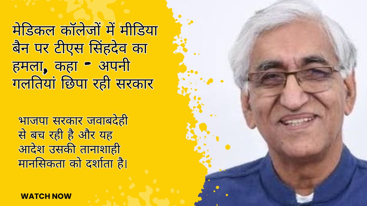 Continue Readingमेडिकल कॉलेजों में मीडिया बैन पर टीएस सिंहदेव का हमला, कहा – अपनी गलतियां छिपा रही सरकार…