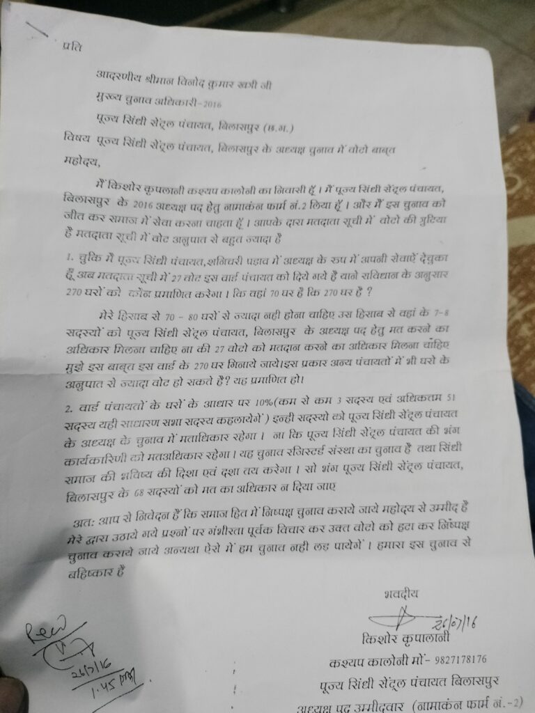 *बिलासपुर के सिंधी समाज की समितियों की पारदर्शिता, लोकतांत्रिक अधिकार और सत्ता केंद्रित चेहरे पर सवाल…