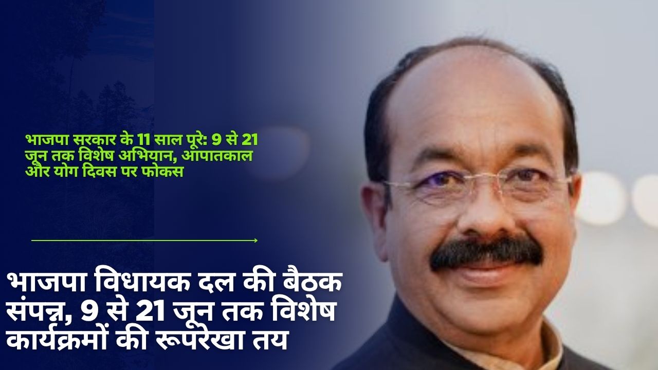 छत्तीसगढ़ के उपमुख्यमंत्री अरुण साव ने बुधवार को राजधानी रायपुर में भाजपा विधायक दल की बैठक के बाद मीडिया को संबोधित करते हुए बताया कि प्रधानमंत्री नरेंद्र मोदी के नेतृत्व वाली सरकार के 11 वर्ष पूरे होने के उपलक्ष्य में पार्टी 9 जून से 21 जून तक राज्यभर में विशेष कार्यक्रम आयोजित करेगी।