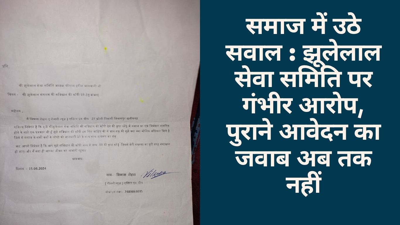 बताया गया है कि दिनांक 15 अप्रैल 2024 को समिति के तत्कालीन अध्यक्ष हरीश भगवानी को एक आवेदन सौंपा गया था, लेकिन आज तक उस आवेदन का कोई जवाब नहीं दिया गया और न ही उसकी कोई जानकारी आवेदक को दी गई। इससे समाज के लोगों में नाराज़गी और अविश्वास का माहौल बन गया है।