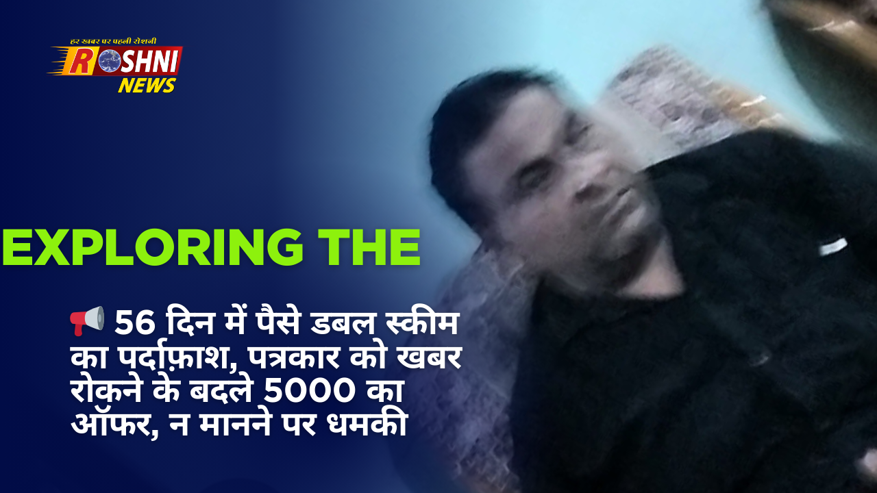 рд╢рд╣рд░ рдореЗрдВ 56 рджрд┐рди рдореЗрдВ рдкреИрд╕реЗ рдбрдмрд▓ рдХрд░рдиреЗ рд╡рд╛рд▓реА рд╕реНрдХреАрдо рдХрд╛ рдЦреЗрд▓ рдЬреЛрд░реЛрдВ рдкрд░ рдЪрд▓ рд░рд╣рд╛ рд╣реИред рдЬрдм рдЗрд╕ рдкрд░ рдПрдХ рдкрддреНрд░рдХрд╛рд░ рдиреЗ рд╕рдЪреНрдЪрд╛рдИ рдЙрдЬрд╛рдЧрд░ рдХреА, рддреЛ рдЕрдм рдЙрд╕реЗ рдЦрдмрд░ рди рдЪрд▓рд╛рдиреЗ рдХреЗ рдмрджрд▓реЗ 5000 рд░реБрдкрдП рдХрд╛ рдСрдлрд░ рджрд┐рдпрд╛ рдЧрдпрд╛ред рдкрддреНрд░рдХрд╛рд░ рдиреЗ рдпреЗ рдСрдлрд░ рдареБрдХрд░рд╛ рджрд┐рдпрд╛ рдФрд░ рдкреВрд░рд╛ рдорд╛рдорд▓рд╛ рдЙрдЬрд╛рдЧрд░ рдХрд░рдиреЗ рдХрд╛ рдлреИрд╕рд▓рд╛ рдХрд┐рдпрд╛ рд╣реИред